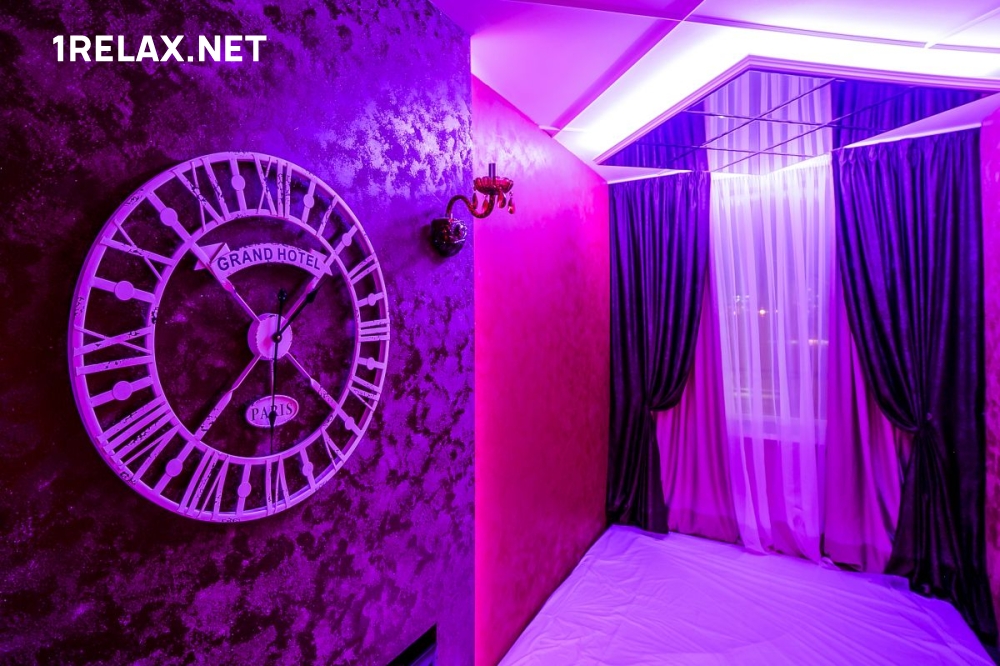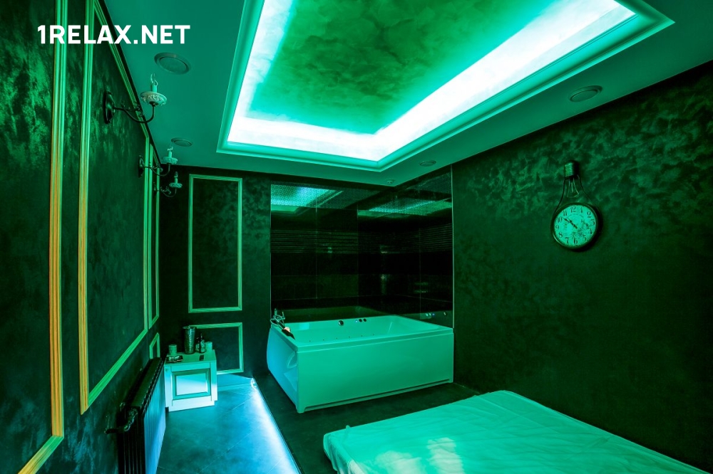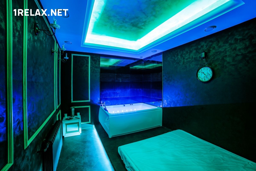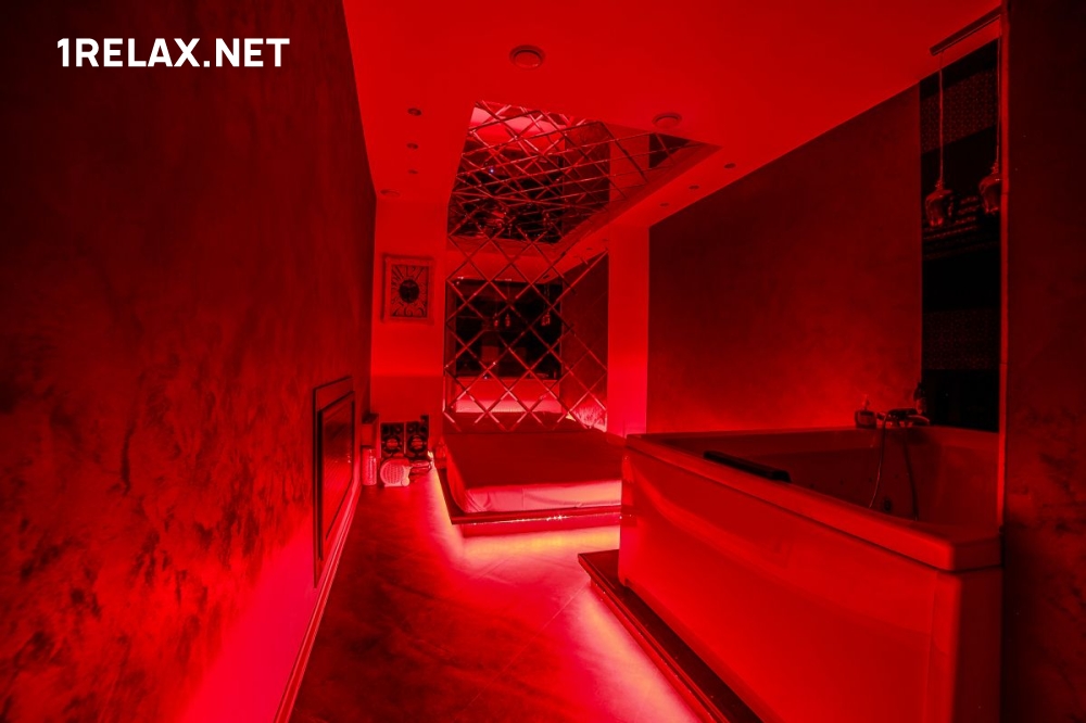 Шесть уютных комнат оформлены со сдержанной роскошью. Подсветка и мягкая музыка помогают расслабиться, а обилие зеркал позволяет рассмотреть происходящее волшебство в самых пикантных ракурсах.